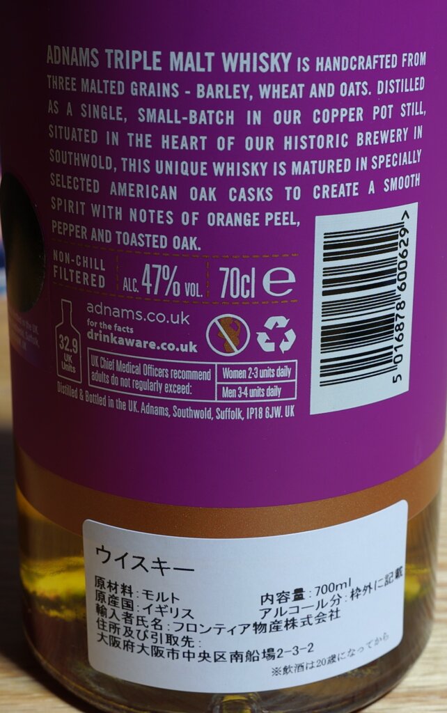 唸らせる程美味いとは思いませんが、穀物の香ばしさや旨味は良く出ているかと。恐らく辛口寄りになると思いますが、締まりが良い甘さがあって、心地良く飲み続けられるでしょう。「ORANGE PEEL WITH NOTES OF DARK CHOCOLATE ON THE PALATE」とある様に、苦みや果実感があって渋い味わい。分かり易い美味さではなく、地味な感じです。原酒の若さ、樽感、穀物の香ばしさを感じ、実直。