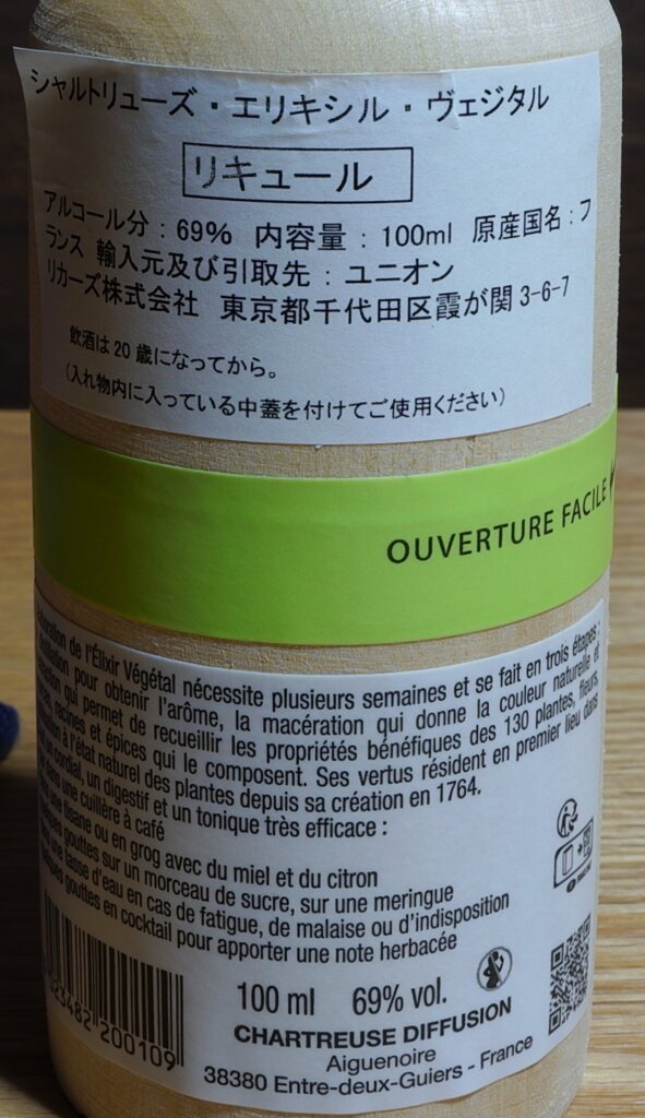 2026/1/18開封、価格は2,300円。度数69.0度、容量100ml。以前バーで試し飲みして美味しかったので、自宅でよく研究すべく購入しました。1605年に伝えられた処方を基に、1737年より造られているそうで、約130種の薬草・香草・花が原料として使用されています。