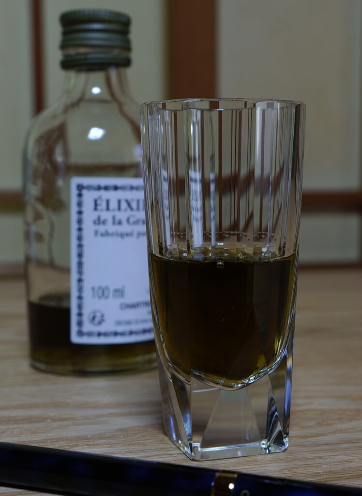 瓶は酒瓶と言うより、薬品のそれの様に見えます。度数は相当高いので確かにアルコールの強さを感じますが、喉に引っ掛からず驚く程容易に飲めます。130種の薬草等を使っているとあって、香りの複雑さや深さがあります。以前バーで飲んだ時と印象は大きく変わらず、駄菓子の様な、子供向けの甘い風邪薬みたいな味。甘ったるくないのが良い。