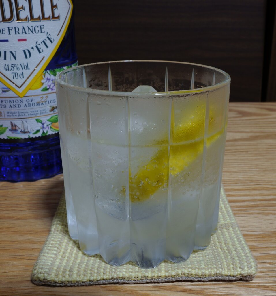 ライムが爽やかな感じが強いのに対し、レモンも爽やかさがあるけれど酸味が強く、皮の苦みが出て来ると思います。すっきりとした甘さになるが、レモンの存在感が強い。レモンは浮かべるだけで、搾り汁は使わないで良いかも。と思い、二杯目は一度グラスを水でよく注ぎ、果汁を添加しないで作りました。予想通り酸味が後退しましたが、これはこれで物足りない感じがする。やはり果汁も多少添加した方が良いでしょう。今回作ったジントニックは、残念ながらジンの存在感が希薄でした。比率はこれで良いと思うので、元のジンの弱さだろうか。恐らくシタデルのジンは、ジュニパーが優しいのだと思います。