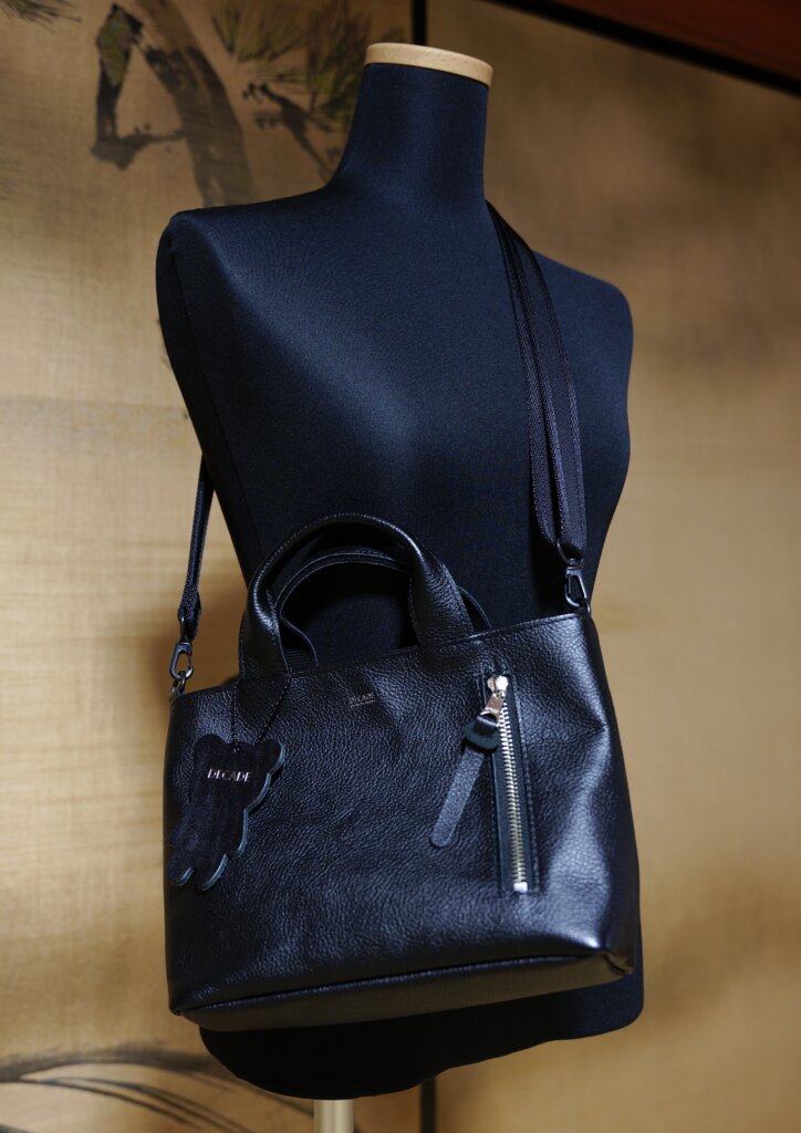 私はこの商品をZOZOTOWNで購入しました。ZOZOの注文画面には「ブラック系その他」と色の表示がありますが、何の事か分かり辛い。届いてから分かりましたが、どうやらこの「ブラック系その他」は、ファスナーの色が銀色の方を指しているみたいです。この商品は二色展開していますが、黒いファスナーの方が欲しいなら、「ブラック」と表示がある方を選ぶ必要があります。ファスナーの開閉は非常に滑らかです。素材は本体に牛革を使い、裏地(内部収納)は綿100%です。把手にぶら下がっている熊の飾りも革製だと思いますが、この熊ちゃんは可愛いので私は嫌いではありません。把手は程良い硬さがあり、握り心地が良いです。