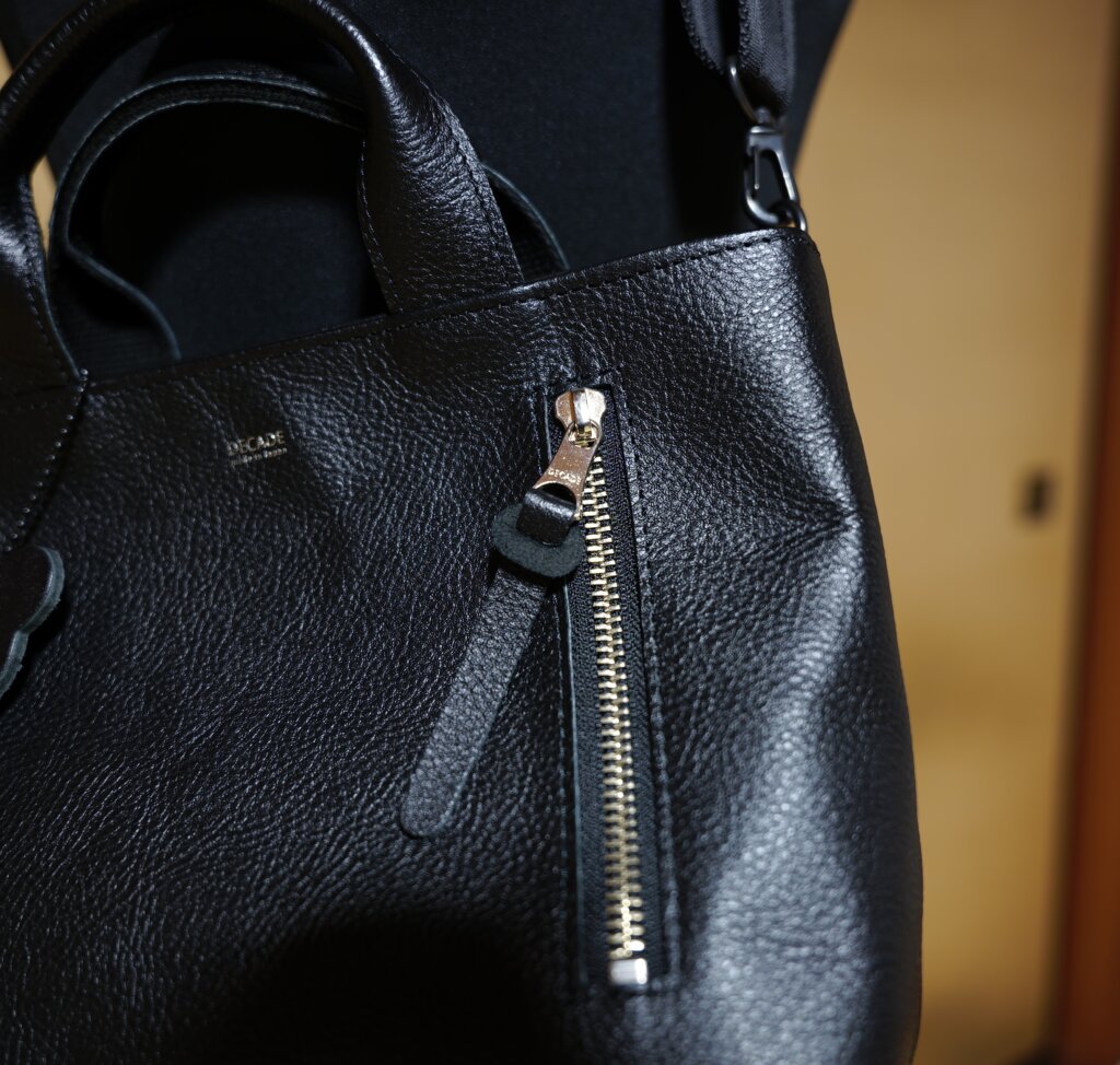 三年程前に購入したDECADE(ディケイド)のクラッチバッグ(別記事有り)をずっと使っていましたが、収納力に不足を感じ、新たな商品を買い足しました。今回紹介するのは、防水加工が施されたショルダーバッグです。価格は二万円弱で、非常にお手頃です。こちらの商品も日本製です。