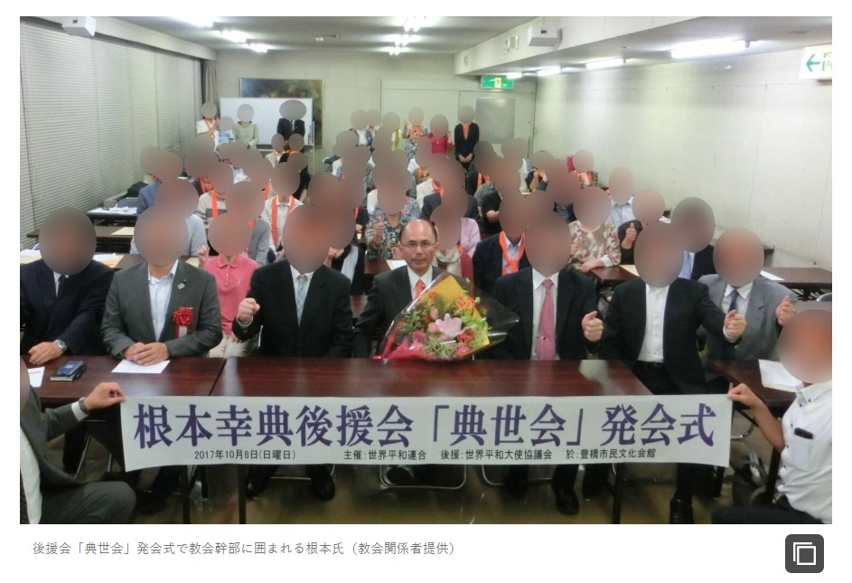 豊橋市関係の記事を書いたので、良い機会ですから根本幸典についても少し語っておきます。根本は2024年の衆院選で40%近い票を得て勝利しました。れいわ新選組の辻恵さんが当選を果たせなかっただけに、本当に腹立たしいです。下記画像は文春オンラインから拝借してきました。「主催:世界平和連合」と掲げられていますが、平和連合とは旧統一教会の創始者である文鮮明が1991年に創設した政治団体です。「根本幸典後援会」の文字がはっきり確認出来ますが、ここから根本がカルト宗教から支援を得ている事がよく分かると思います。