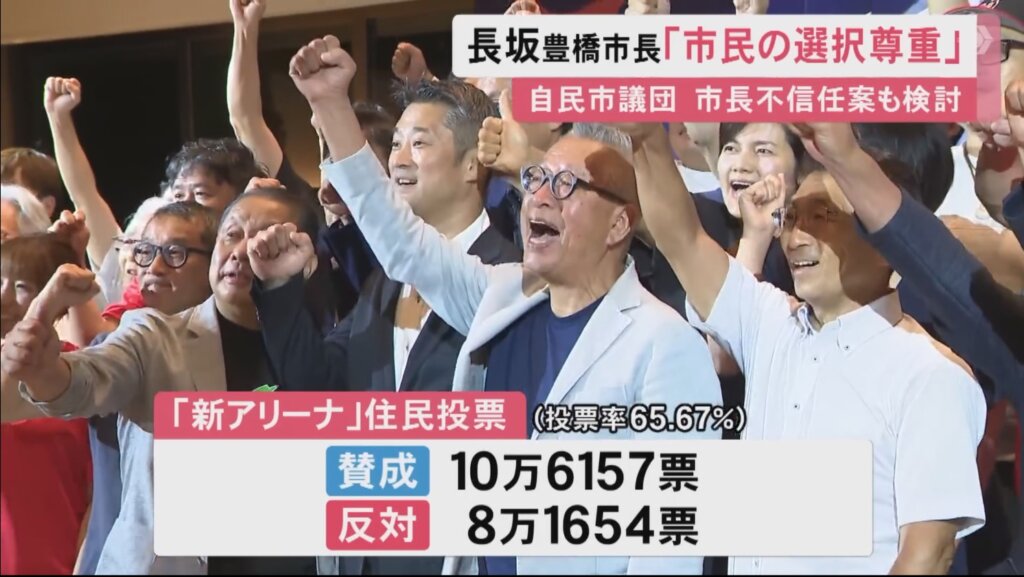 2025年7月21日、新アリーナの事業継続の賛否を問う住民投票があり、即日開票されました。結果は賛成が10万6157票、反対が8万1654票。非常に残念な結果でした。参院選では参政党が議席を大量に獲得し、期待していたれいわが予想より議席を伸ばせなかったのもあり、大変気分が悪くなったものです。長坂市長は同月22日に「住民投票で新たな結果が示された以上、尊重しなければならない」として市の関係部署に指示を出し、事業者側に契約解除の取り下げ・業務の一時中止の解除を要請しました。25日には建設の代表企業であるスターツコーポレーションを直接訪ね、再開の方針を伝えたそうです。市長は28日に記者会見を開き、住民投票の結果を受けて事業再開の意思を明らかにしました。投票からここまでの動きは極めて迅速でした。反対を表明して当選しただけに、心の中では悔しさや納得のいかなさがあったと思います。しかし結果は結果ですので、以前明言した通りに潔く、即座に舵を切り直しました。誠実な人物だと思います。郵政民営化法案が否決されたから駄々をこねて、その日の内に衆議院を解散した小泉純一郎とは雲泥の差ですね。