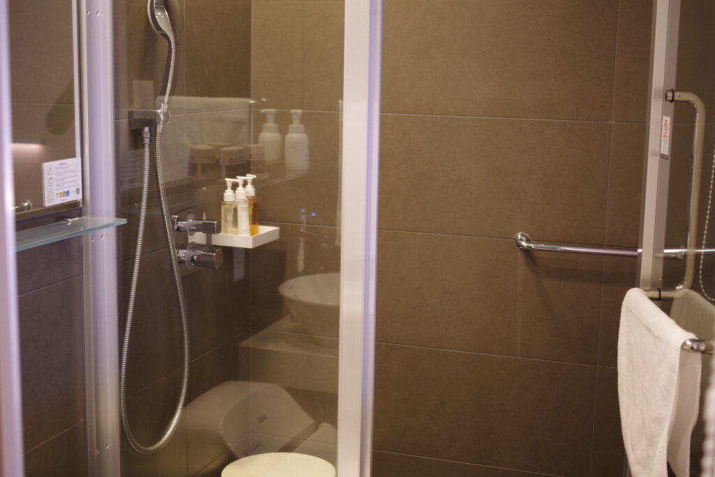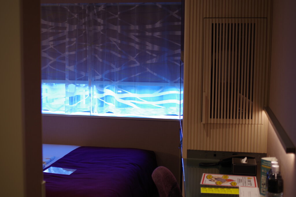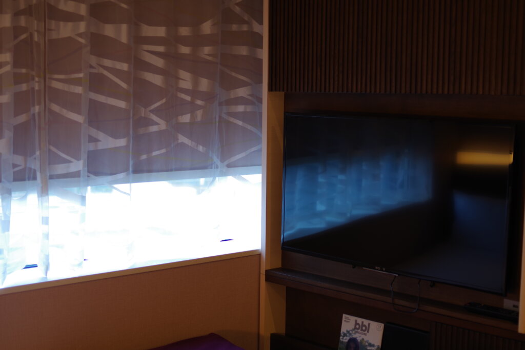 アルファベットでホテル名が案内されている建物に進入し、四階にある受付へ向かいました。受付では従業員ではなく客がタッチパネルを操作し、自分でカードキーを出す仕組みになっています。受付係が三人もいるのに、非常に無駄だと思います。結局操作が分からない客への説明や、外国人の接客に人を使っているので、完全に無人化出来ず意味がありません。最近この様に中途半端な所が多いですが、何を目指しているのか全く不明です。