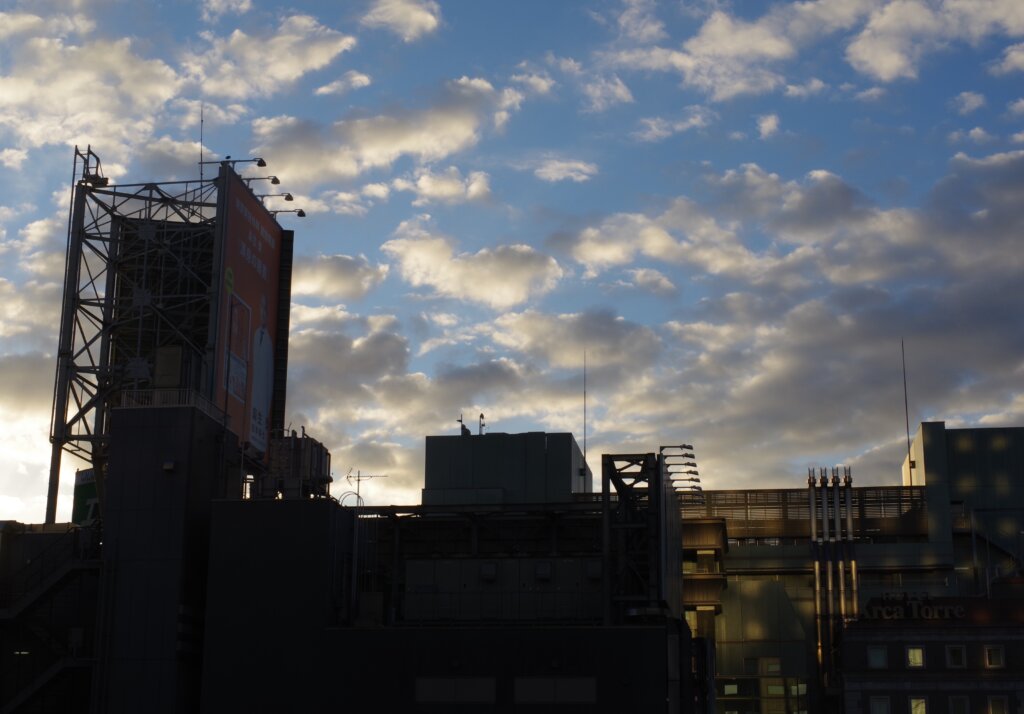 明けて早朝。窓から差し込む光に肉体が反応し、携帯電話の目覚ましが鳴るより早く、意識がはっきりとしてきました。こうなると二度寝が中々出来ず。微睡みの心地良さに未練を残しつつも、次第に起きる体勢を整えました。窓から外の光景を見やると、美しい朝焼けの空。どんなに街が汚くても、自然の美しさは変わりません。私は基本的に食に対して拘りが無いので、ホテルの目と鼻の先にある松屋で朝食を摂る事に決めました。昨夜バーへ向かう途中、道路を挟んで向かい側に松屋があるのを確認しました。