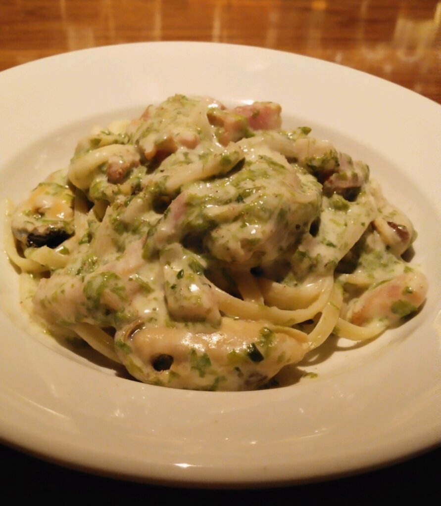 先ずは腹ごしらえでクリームパスタとジントニックを注文しましたが、パスタは味が濃過ぎました。昼に食べたペペロンチーノの方が、ずっと美味しかったです。ジントニックはどのジンを使っていたか見落としました。手元はしっかり観察すべし。ここは、ちゃんとライムを使ってくれたのが嬉しい。ジントニックは極めて単純なカクテルで、ジンにトニックを注ぐだけ。それでも一手間加えれば、ずっと美味しく仕上がります。ただトニックを注いで提供する店がたまにありますが、それじゃ駄目です。
