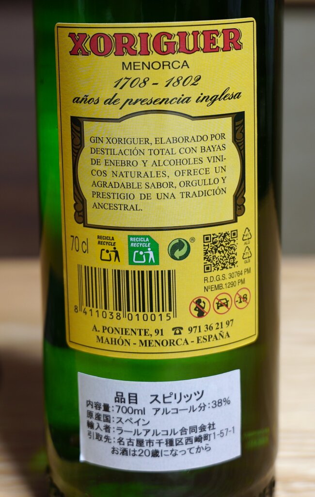 2022/10/8開封、価格は2,530円。度数38.0度、容量750ml。産地はスペイン、メノルカ島のマオンにあるショリゲル蒸留所です。家族経営を行っており、生産された製品の内、四割ほどは輸出に回されています。スピリッツは他の多くのジンと違い、穀物や糖蜜ではなく葡萄を元に作られております。また、使われている原料は水とジュニパーのみという簡潔さです。瓶詰の際に希釈(加水)をしていないのも珍しい特徴です。